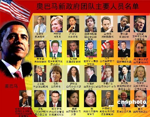 中新網12月21日電 綜合報道,美國當選總統奧巴馬于當地時間19日宣布了最后幾項內閣提名,從而在就職前一個月完成了組閣工作。