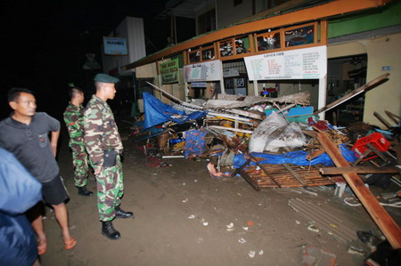 中新網7月18日電 據美聯社報道,印尼士兵在災區檢查地震廢墟。印尼爪哇島南部印度洋海域當地時間7月17日下午3點20分左右發生強震,引發部分地區海嘯。印尼官方稱,海嘯已造成至少121人死亡,80多人失蹤。(春風)