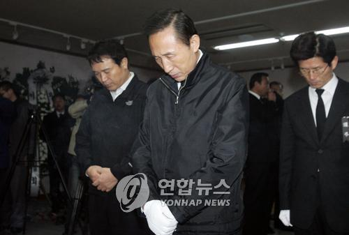韓總統當選人李明博慰問冷庫爆炸遇難者家屬(圖)