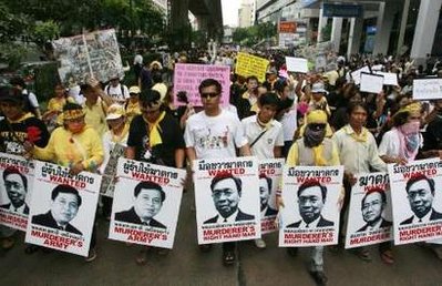 反政府示威者抗議總理頌猜采用強制手段鎮壓民眾。當日,示威者封鎖了一條商業街道,并四處散發記錄7日警民對峙的碟片及照片,還有人高舉稱警察總長和頌猜為“殺手”的標語。