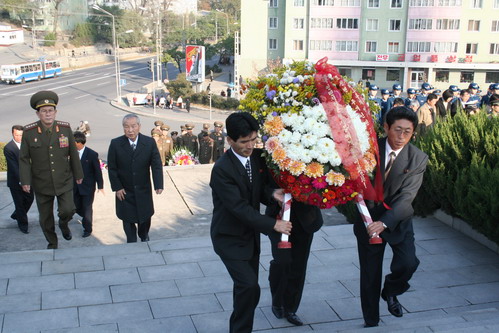 友誼塔前,朝鮮人民軍儀仗隊(duì)身著戎裝,英姿颯爽。伴隨著軍樂隊(duì)莊嚴(yán)的奏樂聲,朝鮮勞動(dòng)黨中央委員會(huì)、最高人民會(huì)議常任委員會(huì)和內(nèi)閣、人民武力部、外務(wù)省、人民保安省、貿(mào)易省、文化省、朝中友協(xié)和對(duì)外文委、平壤市黨委和人民委員會(huì)向友誼塔敬獻(xiàn)了花圈;ㄈ剮蠈懼肮鈽s屬于中國人民志愿軍烈士”。朝鮮最高人民會(huì)議常任委員會(huì)秘書長崔永林、人武部副部長樸在京、外務(wù)省副相金永日、貿(mào)易省副相李明山、朝中友協(xié)副委員長兼對(duì)外文委副委員長田英進(jìn)等朝領(lǐng)導(dǎo)人和部門負(fù)責(zé)人及百余名各界群眾出席了儀式。
