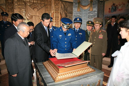 中朝兩國人員在友誼塔前向烈士們默哀致意,并在儀式后參觀了友誼塔。崔永林秘書長、劉曉明大使和宋琨團(tuán)長等翻閱了保存在友誼塔內(nèi)的志愿軍烈士名冊(cè)。崔永林說,58年前,中國人民志愿軍入朝作戰(zhàn),與朝鮮人民和軍隊(duì)并肩戰(zhàn)斗,一同打敗了侵略者。朝鮮黨、政府和人民十分珍視兩國人民和兩國軍隊(duì)用鮮血凝成的深厚友誼,對(duì)中國人民志愿軍的豐功偉績(jī)永志不忘。劉大使感謝朝方為中國人民志愿軍入朝參戰(zhàn)58周年舉行紀(jì)念活動(dòng),并表示中朝兩國人民在保衛(wèi)家園、維護(hù)和平的共同事業(yè)中結(jié)下了深厚的友誼。在兩國最高領(lǐng)導(dǎo)人的親切關(guān)心下,兩國人民繼承和發(fā)揚(yáng)這一友好傳統(tǒng),使兩國友好合作關(guān)系不斷得到深化和發(fā)展。