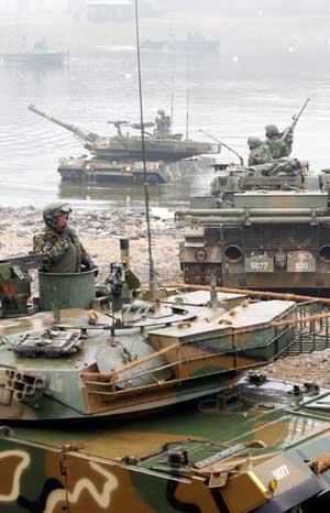 中新網2月5日電 據韓聯社報道,5日上午,韓美在京畿道漣川郡進行了聯合戰車渡河演習。