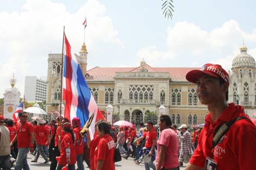 中新網3月26日電 泰國反政府的紅衫軍26日號召約3萬支持者聚集曼谷示威,從皇家田廣場游行至總理府,下午展開包圍行動,并揚言這次示威至少持續一個月。