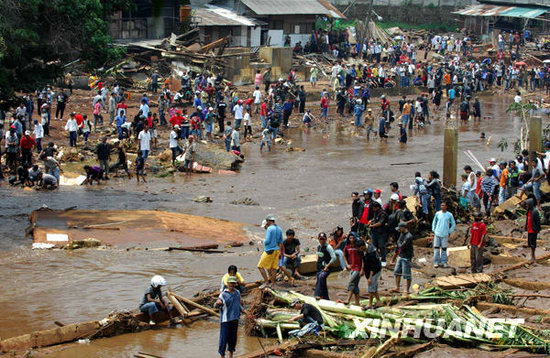 當?shù)貢r間27日凌晨2時許,在距雅加達以南約50公里的文登縣發(fā)生湖壩決堤事故。古農(nóng)湖大壩突然崩塌,洪水隨即沖入居民區(qū),水深最高達2.5米,許多居民在睡夢中被大水卷走。(新華網(wǎng)雅加達3月29日電/記者趙金川)