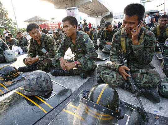 泰國軍警13日開始采取清場行動并與反政府示威者發(fā)生激烈沖突。政府部門稱,沖突造成2人死亡113人受傷,駐守在總理府外的數(shù)千名示威者已被軍隊包圍。