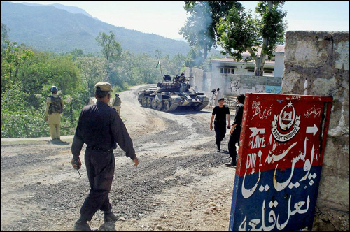 據(jù)《華盛頓時(shí)報(bào)》5月3日?qǐng)?bào)道,巴基斯坦西北邊境省政府上星期六宣布成立一個(gè)伊斯蘭法庭,其目的是為了迎合塔利班的要求,從而使塔利班武裝分子放下武器。此前,巴基斯坦軍方一直在努力將塔利班組織驅(qū)逐出西北邊境省地區(qū),但武力進(jìn)攻使成千上萬的當(dāng)?shù)鼐用裉与x家園,造成巴政府在政治和軍事上的巨大困境。