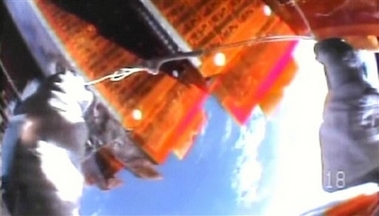在6小時的工作中,美國宇航員帕拉辛斯基嘗試修補一塊在上月底在修展開時損毀的太陽能板的一道裂縫。據悉,此次修復工作是成功的,太陽能翼板將能全面張開,伸展到適當位置。