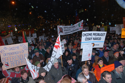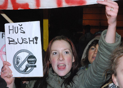 中新網11月18日電 2000多名來自捷克各地的民眾和歐洲其它國家反戰(zhàn)組織的代表11月17日冒著蒙蒙雨雪在首都布拉格舉行集會和游行,反對美國在捷克建立中歐導彈防御系統(tǒng)的雷達基地。(黃頻)