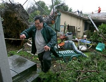 據(jù)加州州長緊急服務(wù)辦公室發(fā)言人說,在洛杉磯的奇諾市,一名婦女企圖逃離拋錨的汽車時,被洪水沖走;一名在薩克拉門托尤巴市的工人則被倒塌的大樹壓死。