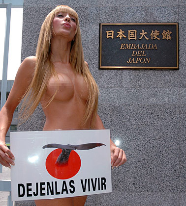 中新網12月3日電 綜合報道,12月1日,阿根廷模特Vanessa Carbone裸體手持“讓它們活下去”的牌子站在日本駐圣地亞哥大使館門前抗議捕鯨和非法販運獸皮。這個抗議活動要求智利政府下令宣布其在太平洋的領海為鯨魚保護區。