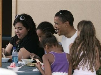 奧巴馬度假遭遇停電 攜女兒吃刨冰享天倫樂(圖)