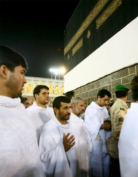 內賈德總統與伊朗外長穆塔基,伊朗議會副議長阿布塔里比和總統高級顧問薩姆哈希米共同參加樂此次朝覲儀式。