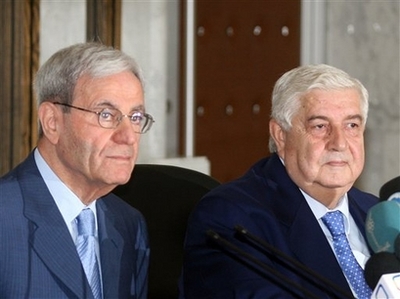 敘外長穆阿利姆(右)和黎外長薩盧赫