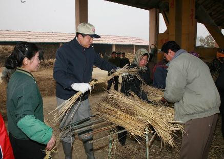 劉曉明大使一行首先來到打谷場(chǎng),同當(dāng)?shù)剞r(nóng)場(chǎng)員們一道把一個(gè)個(gè)稻捆送進(jìn)大型脫谷機(jī),然后把脫谷后剩下的秸稈扎捆,送進(jìn)倉庫。使館同志和農(nóng)場(chǎng)員有的碼垛,有的搬運(yùn),有的擰麻繩,大家為了共同的豐收忘我地勞動(dòng)。機(jī)器的轟鳴猶如歡慶的鑼鼓聲、粒粒稻谷送來的是豐收的喜悅。
