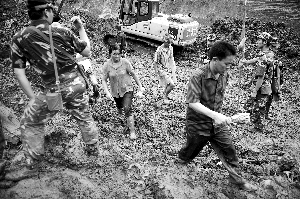 負責挖掘的武警交通直屬工程部的周偉表示,為了確保安全,避免次生災害,大型挖掘機的挖掘工作到下午四點左右才開始。他說,為了保證遺體的完整,他們挖掘的時候都會非常小心。在現場,由于垮塌的直線距離幾百米,幾臺挖掘機分層次挖掘。挖出一大鏟泥土后,從高處落下,看是否有遺體存在。