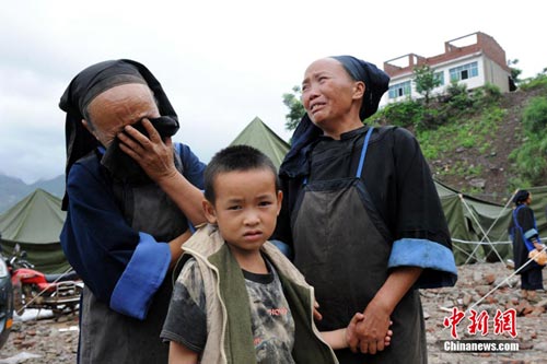 “可能是救不出來了。”大寨村永樂組70歲的布依族老漢盧正安低聲囁嚅著。盡管這么說,但他還是不住的向家的方向望去。伴著28日中午大山的一聲巨大悶響,巨大的泥石流將他在貴州關嶺縣大寨村大崗嶺半山腰上的家埋得沒了蹤影。不僅是所有家當,被埋的還有他正在家中吃午飯的15歲孫子小川。