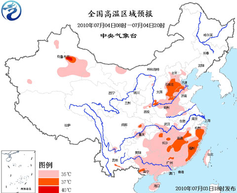 預(yù)計,4日白天,江漢南部、江南大部、華南大部、貴州東部、重慶中西部、四川盆地東北部等地有35~37℃、局地38~40℃的高溫天氣。另外,北京中南部、河北大部、山西南部、河南北部和東部、山東西部、安徽北部、陜西關(guān)中地區(qū)等地的部分地區(qū)也將有35~37℃、局地38~39℃的高溫天氣。