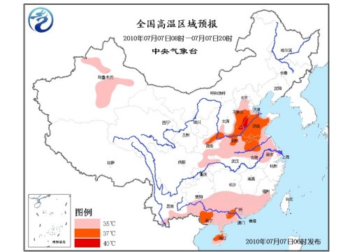 中新網(wǎng)7月7日電 中央氣象臺7日清晨6時繼續(xù)發(fā)布高溫橙色預警,氣象臺也指出,未來三天,江南漢水江淮有較強降水,華北黃淮華南等地有高溫。