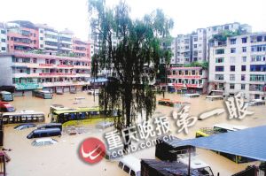 從前晚9時開始,酉陽縣各地遭遇入汛以來最強降水,10個鄉鎮遭大暴雨襲擊,縣城主街道水深達1.2~1.5米,全縣停電。