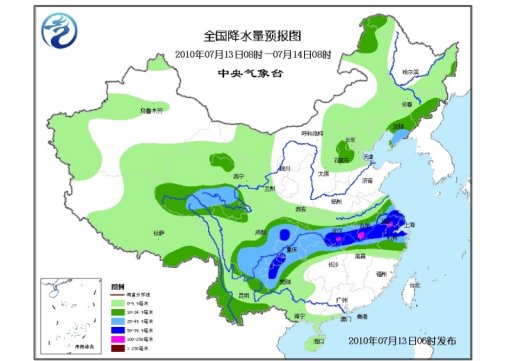 據(jù)中央氣象臺(tái)監(jiān)測顯示,昨天5時(shí)至今天5時(shí),江蘇中部、安徽中部和湖南西北部部分地區(qū)及四川南部局地降雨100-170毫米,江蘇泰州、姜堰、海安和湖南沅陵降雨量達(dá)200-230毫米。