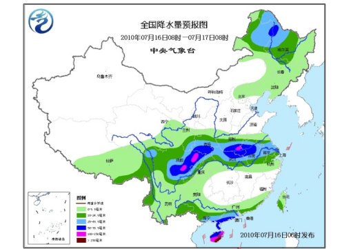 中新網7月16日電 據中央氣象臺預報,未來三天,四川盆地、黃淮、江淮、江漢、內蒙古東部、黑龍江西北部、廣東南部、海南、廣西南部沿海、陜西南部、云南大部等地將有大到暴雨,其中四川南部和東部、安徽中部、廣東西南部、廣西東南部、海南、云南東南部等地的部分地區有大暴雨,局部有特大暴雨;上述部分地區并伴有短時雷雨大風或冰雹等強對流天氣。
