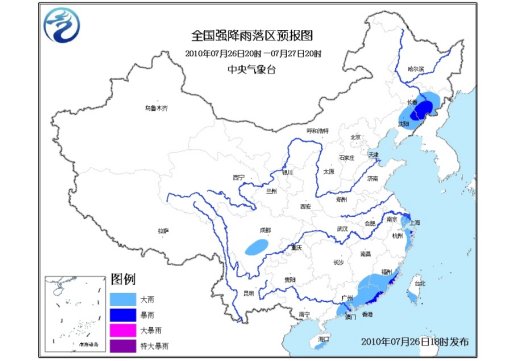 中新網7月26日電 據中央氣象臺消息,中央氣象臺7月26日18時繼續發布暴雨藍色預警:預計,7月26日20時到7月27日20時,吉林中東部、遼寧北部、四川盆地南部部分地區、浙江東部、福建東部和南部、江西南部、廣東中東部、海南南部、臺灣南部等地有大雨或暴雨,其中,浙江東部沿海、福建東部、廣東東部等地的局部地區有大暴雨;上述局地并伴有短時雷雨大風等強對流天氣。