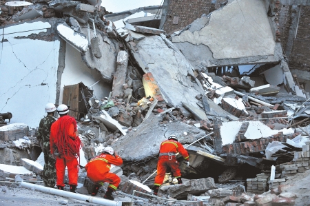 踏著滿地磚頭瓦礫,戰士們穿行在殘垣斷壁之間,不斷用擴音器喊話:“里面還有人嗎?”每喊一句,戰士們便停下身來,生怕自己輕微的腳步,掩蓋了被困者發出的聲音。
