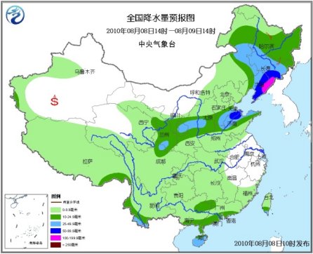 8日08時至9日08時,新疆天山地區(qū)和南疆西部、西藏大部、青海東北部和南部、西北地區(qū)中東部、內(nèi)蒙古中東部、東北、華北、黃淮大部、江淮西部、江漢、江南中西部、華南大部、西南以及臺灣等地有小到中雨或陣雨,其中,黑龍江南部、吉林大部、遼寧大部、河北中南部和東部、北京東部、天津、山東北部以及內(nèi)蒙古東部的部分地區(qū)、海南大部、臺灣南部等地有大雨或暴雨,吉林東南部、遼寧中東部等地的局地還將有大暴雨;上述部分地區(qū)并伴有短時雷雨大風(fēng)等強(qiáng)對流天氣。內(nèi)蒙古中東部、東北西部等地有4~6級風(fēng)。黃海、東海、臺灣海峽將有5~8級風(fēng)。