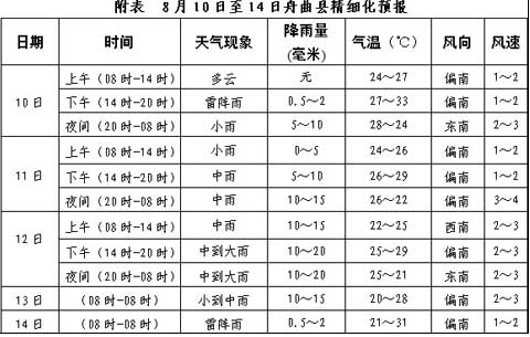 14日,舟曲縣及白龍江流域上游陰有陣雨或雷陣雨,降雨量有5~10毫米。