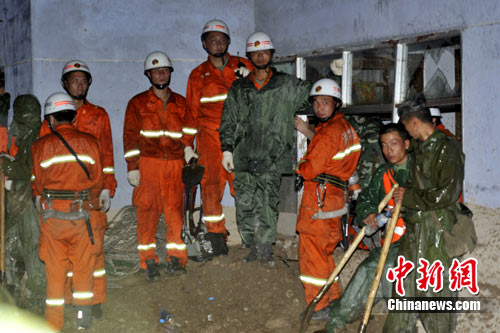 電閃雷鳴,閃電不時將舟曲照得亮如白晝。9時40分許,解放軍官兵開始疏散現(xiàn)場。張貴泉說,目前有二十名防化團官兵和三名國家救援隊員在樓里作業(yè)。