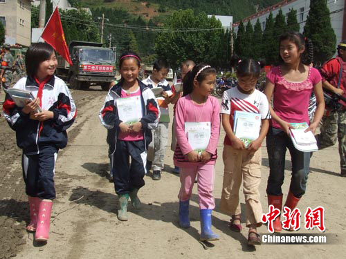 中新網隴南8月26日電 (侯志雄 陳艷艷)記者今日從甘肅隴南市委宣傳部獲悉,隴南暴洪災害受災地區為確保學校秋季按時開學,對災害中受損的校舍進行排查評估和維修加固,并按時買來了新課本等教學用品,保證了學校按期開學。