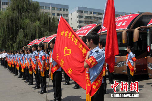 30日上午,第三批轉運的26輛旅游大巴從舟曲運載1056名學生和老師60名,行至蘭州后仍安置在蘭州科技外語學校、甘肅省銀行學校和財政學校。