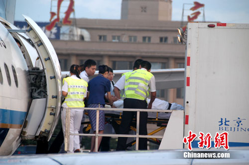 中新網(wǎng)北京8月28日電(張正尤) 8月27日18時(shí)15分,10名伊春“8•24”空難傷員飛抵首都國際機(jī)場。被在此等候的北京急救中心12輛急救車火速轉(zhuǎn)運(yùn)到北京大學(xué)第三醫(yī)院、北京積水潭醫(yī)院救治。每家醫(yī)院安排收治5名傷員,傷員隨行家屬來京照顧傷員。