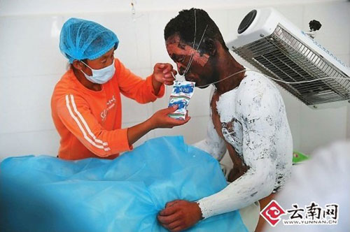 據瀘西縣人民醫院醫師彭銳介紹,12名傷者中4人是特重度燒傷,3人是重度燒傷,還有一個是燒傷的面積小、程度也較輕。另有3人是輕微燒傷,還有一人輕微骨折,正在骨外科接受治療。