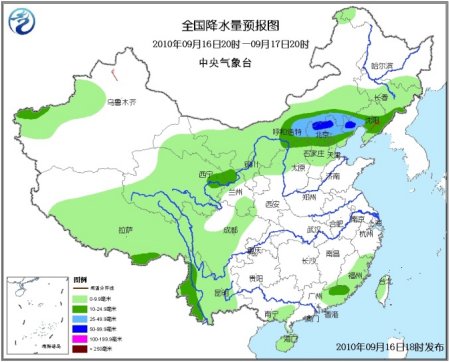 16日20時至17日20時,新疆西南部、青藏高原中東部、西北地區東北部、內蒙古中西部和東南部、東北中南部、華北中北部、四川中西部、云南大部、廣西南部、海南、廣東東部、福建大部、臺灣西部等地有小到中雨或陣雨,其中,內蒙古中部偏南地區、河北北部、北京北部、遼寧西部等地的部分地區有大雨,局地暴雨;上述地區局部并伴有短時雷雨大風或冰雹等強對流天氣。新疆大部、甘肅西部、內蒙古東部、東北地區中北部等地有4~6級風;南疆盆地的部分地區有揚沙或浮塵天氣。渤海將有5~7級東北風。