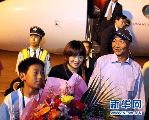 9月25日凌晨,被日方在釣魚島海域非法抓扣的中國漁船船長詹其雄搭乘中國政府派出的包機(jī)安全返抵福州。外交部部長助理胡正躍、福建省副省長洪捷序到機(jī)場(chǎng)迎接。