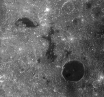 圖中上部是Esclangon環(huán)形山(直徑15km),圖中下部是麥克羅比厄所環(huán)形山(直徑64km)。