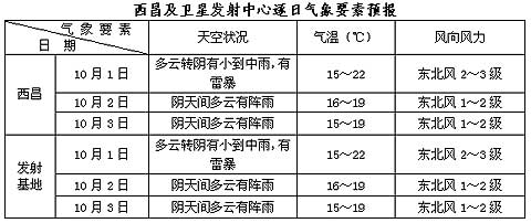 中國西昌衛星發射中心的權威發布:“嫦娥二號”衛星今天(10月1日)晚上即將迎來第一個發射窗口。預計今天空間天氣平靜,對嫦娥二號發射過程無不利影響;今天到4日,西昌市及衛星發射基地以陰天或陰天間多云天氣為主,多陣性降水。