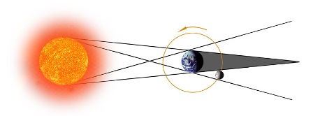 月食的過程和日食的過程有些不同。月球自西向東運動,它在東邊緣先接觸地影,因此月食總是從月輪的東邊緣開始。與日全食一樣,月全食分為相同的5個階段(初虧、食即、食甚、生光、復圓),從食即到生光的全食時間長達1小時以上。朝向月球的半個地球上見到的月食的時刻和情況完全一樣,正如舞臺上的燈泡漸暗至熄滅的過程,對于劇場內的所有觀眾都是一樣,并且會同時看到。