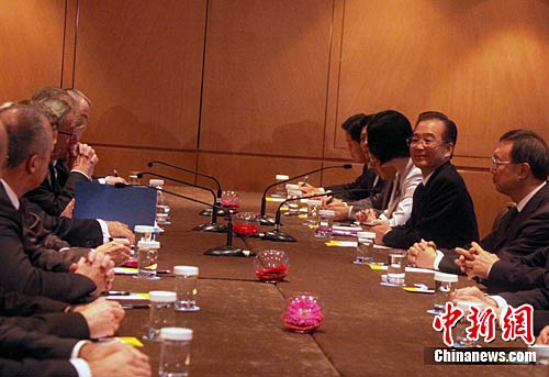 中新網布魯塞爾10月5日電 (記者 周兆軍)中國總理溫家寶5日在布魯塞爾會見歐元集團“三駕馬車”領導人——歐元集團主席、盧森堡首相容克,歐洲中央銀行行長特里謝、歐盟委員會經濟與貨幣事務委員雷恩。