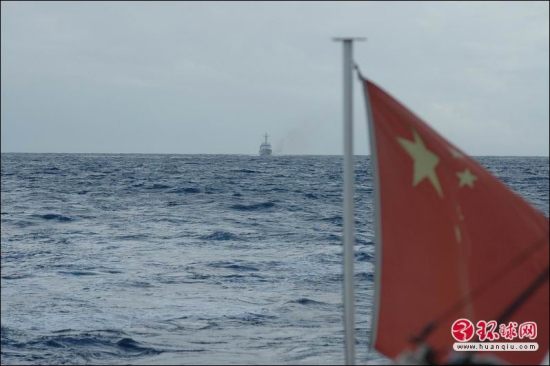 (環(huán)球時報赴釣魚島特派記者程剛2010年10月3日、4日在中國釣魚島海域發(fā)回的報道)這一次的中國漁政釣魚島巡航編隊,漁政201船是指揮船。時值國慶節(jié)日期間,帶隊的東海區(qū)漁政局張秋華副局長一直想到203船上去“看望弟兄們”。10月3日早上,巡航水域的海面難得的平靜,8時許,201船船長施冬下令:“放小艇。”