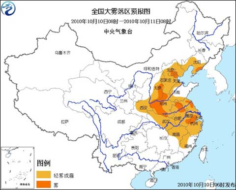 今天上午,遼寧中南部、華北東部和南部、黃淮西部和南部、江淮、江漢北部和東部、江南東部、陜西中部等地有輕霧或霾,其中,遼寧東南部、京津大部、山西東南部、河南西部、安徽北部和東南部、江蘇東北部和南部、浙江北部等地的部分地區(qū)有能見(jiàn)度不足1000米的霧,局地能見(jiàn)度不足500米。