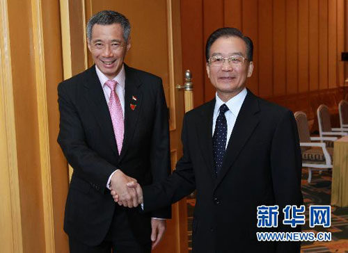 國(guó)務(wù)院總理溫家寶29日在河內(nèi)會(huì)見了新加坡總理李顯龍。