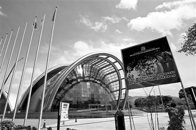 昨日,特立尼達和多巴哥首都西班牙港,國家表演藝術中心沐浴在陽光下,該項目由中國援建。新華社記者 張加揚 攝