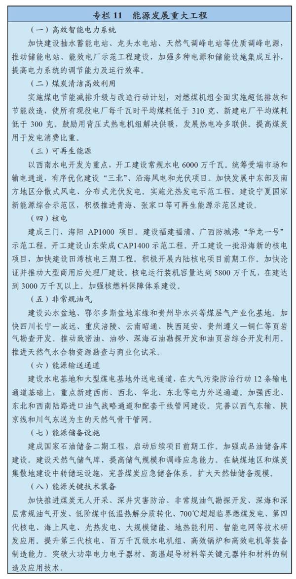 統籌推進煤電油氣多種能源輸送方式發展,加強能源儲備和調峰設施建設,加快構建多能互補、外通內暢、安全可靠的現代能源儲運網絡。加強跨區域骨干能源輸送網絡建設,建成蒙西-華中北煤南運戰略通道,優化建設電網主網架和跨區域輸電通道。加快建設陸路進口油氣戰略通道。推進油氣儲備設施建設,提高油氣儲備和調峰能力。