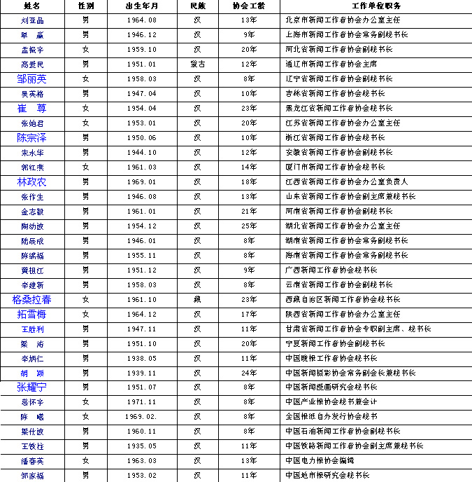 全國(guó)優(yōu)秀記協(xié)工作者名錄