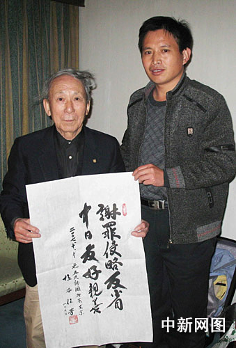 原日本侵華日軍59師團45中隊退伍老兵鹽谷保芳日前再次來到中國山東泰安抗日烈士陵園謝罪,并向陵園敬獻了“謝罪侵略反省,中日友好親善”牌匾,以特殊方式傳達日本人民致力中日友好的信息。