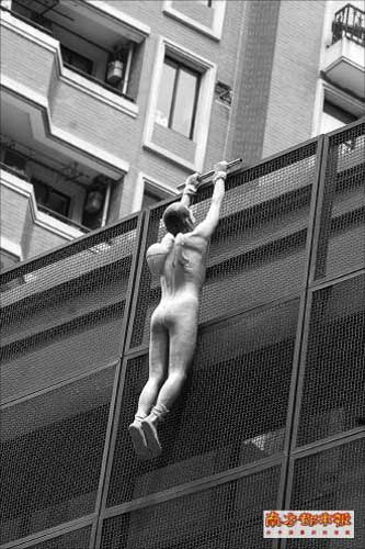 “裸男跳樓”嚇壞買菜老太 藝術品現居民區(圖)
