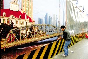 相關部門透露,設計壽命只有50年的外白渡橋,至今已超期服役50年。雖歷經多次維修,但橋體已明顯老化,各部件處于疲勞期。去年7月啟動的外灘通道工程,將以盾構推進的形式,在外白渡橋下掘出一根地下通道。兩相權衡,并經過嚴密論證,相關部門做出了“移橋”的決定。